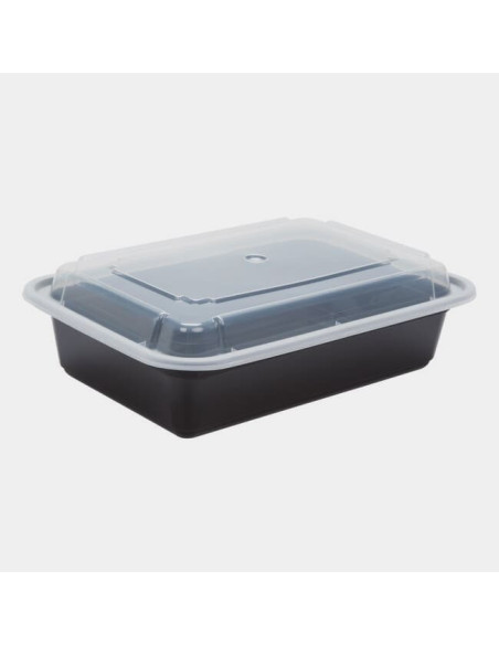 Newspring 38 oz Black Rectangular Microwavable Container with Lid - 150/Case